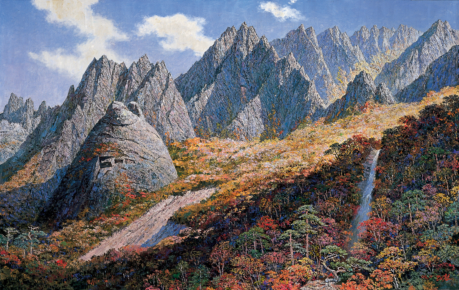 선전화 《우리의 농촌을 사회주의 문화농촌으로!》(1963년), 《달리는 천리마에 다시 한 번 박차를!》(1964년), 《한일협정 무효다!》(1965년), 《모든 지역 모든 전선에서 미제의 손발을 얽어매자!》(1968년, 국가미술전람회 입상), 《국가 및 사회 공동재산을 아끼고 사랑하자!》(1971년), 《미제를 박살내자!》(1973년), 《원수의 심장을 단번에》(1975년), 《4월의 봄 친선예술축전》(성악부분, 교예부분, 종합 1983년), 《더 많은 짐을 더 빨리!》(1984년), 《30만 정보의 날바다를 벼바다로!》(1985년, 국가미술전람회 입상), 《자주, 평화, 친선의 노래 힘차게 부르자!》(1986년), 《모두다 해양체육에로!》(1989년), 《군민일치사상 만세!》(1992년), 《우리는 승리하였다》(1993년), 《모두다 인민체력검정에 참가하자!》(1994년), 《탄광에 더 많은 갱목을!》(1994년, 선전화전람회 입상), 《1995년을 통일원년으로!》(1995년), 《당 창건 50돐을 만풍년으로 빛내이자!》(1995년), 《부닥치는 애로와 난관을 과감하게 이겨내자!》(1996년), 《90년대 하늘의 불사조 길영조를 따라 배우자!》(1997년) 등 다수의 성과작들을 발표하였다. 그는 매 시기 제시된 당의 노선과 정책을 호소성 있는 직관적 형상으로 제시한 선전화들을 창조해왔다.